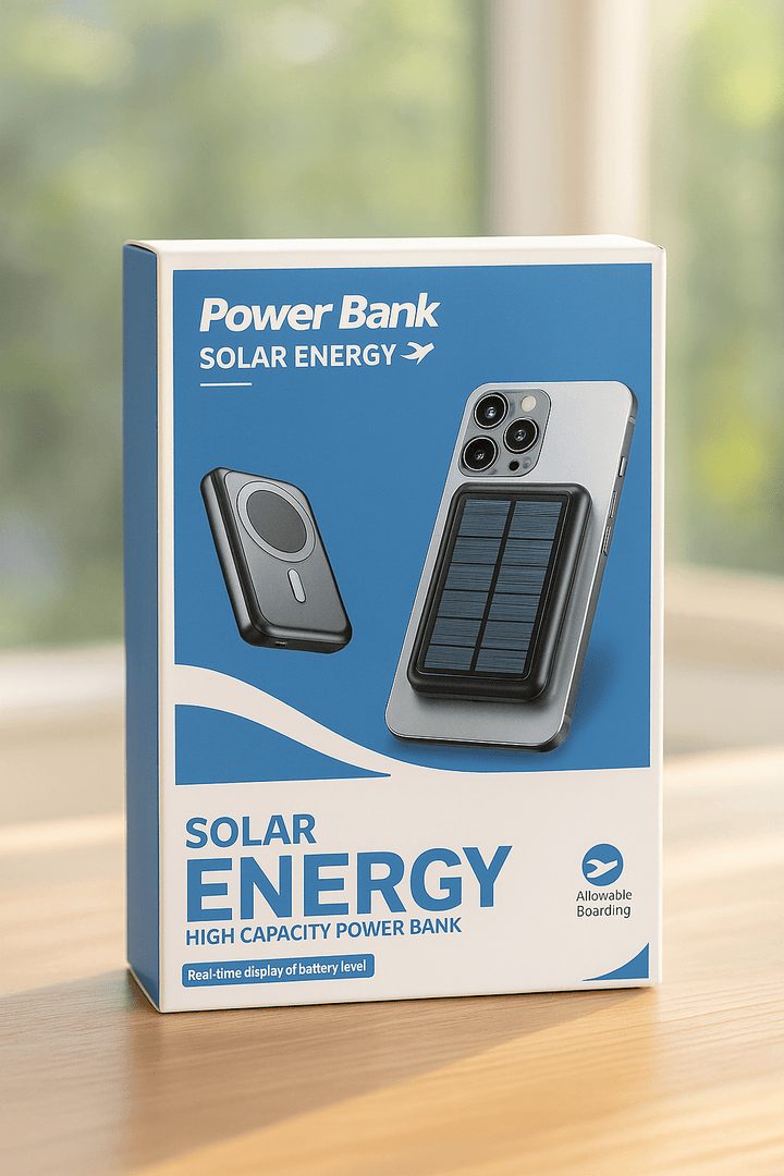 Stay powered anywhere with the Solar Energy Power Bank – a high-capacity, eco-friendly backup battery that features solar charging and real-time battery level display. Whether you're traveling, hiking, or dealing with a power outage, this power bank is a must-have gadget for reliable and portable charging.